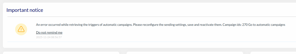 I follow the instructions, reset the send settings, save, etc. for this automatic mail but the message keeps displaying in the dashboard.